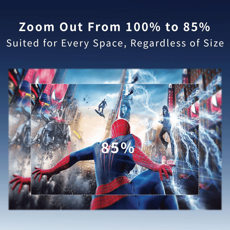Su soporte giratorio de 180° te permite proyectar desde el suelo hasta el techo, adaptándose a cualquier ambiente. Disfruta imágenes de hasta 130 pulgadas, perfectas para noches de cine en casa, reuniones familiares o aventuras de camping al aire libre.
